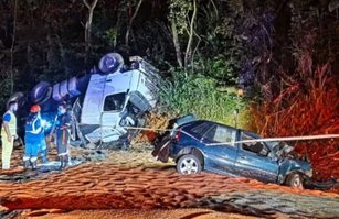 Homem morre ao ser arremessado após grave colisão frontal entre carro e caminhão
