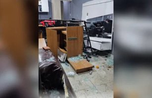 Foragida sem CNH perde controle, invade barbearia e atinge criança. Vídeo